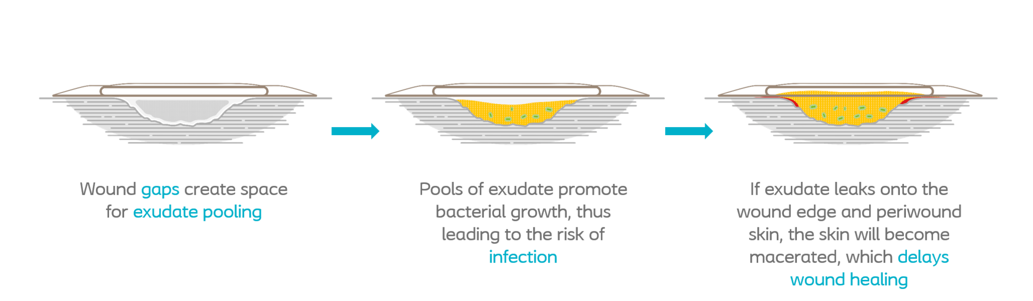 In a thorough assessment of the wound – and the gap between the wound and the dressing – you should consider:2